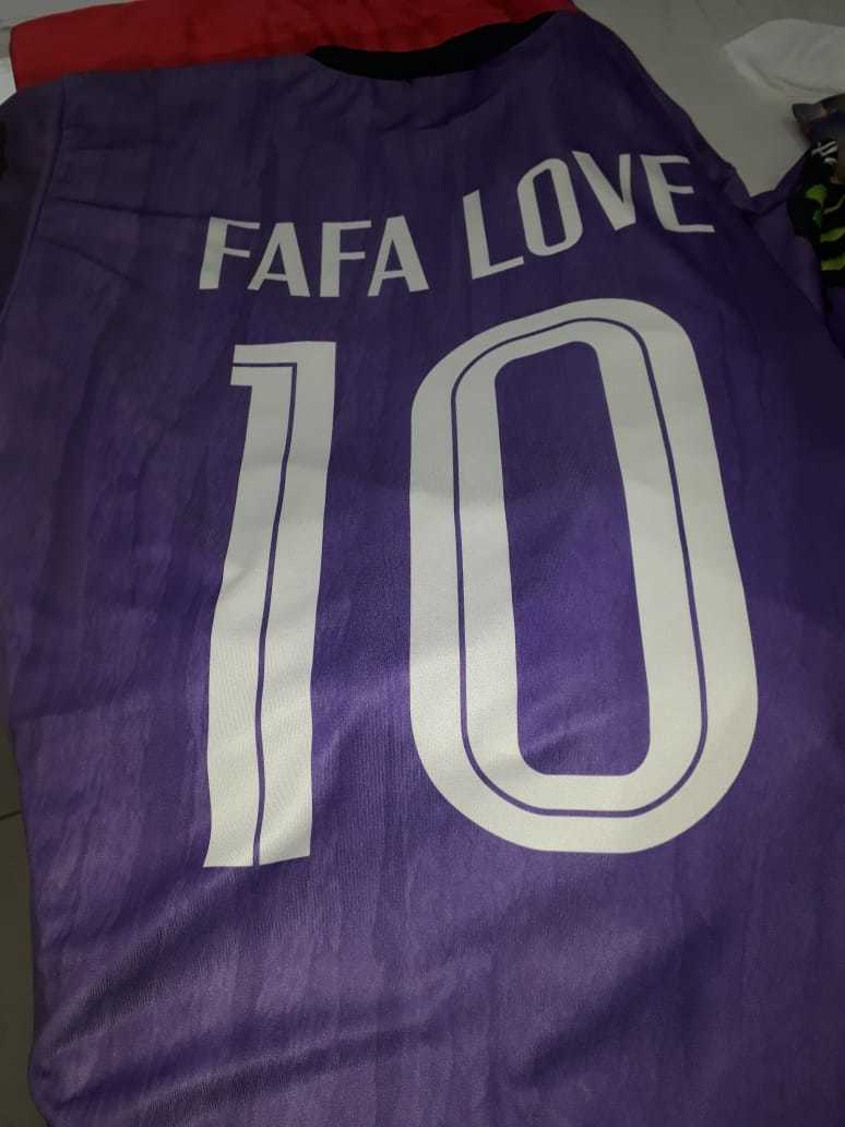 Camiseta estampada com sua arte desejada e personalizada com nome e número.